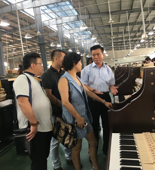 6月20日,江西優秀經銷商參觀團一行10人到我司訪問交流,受到公司領導的熱情接待。在公司總經理伍銳偉的帶領陪同下,經銷商們先后參觀了威騰鋼琴產品展示廳以及生產車間。